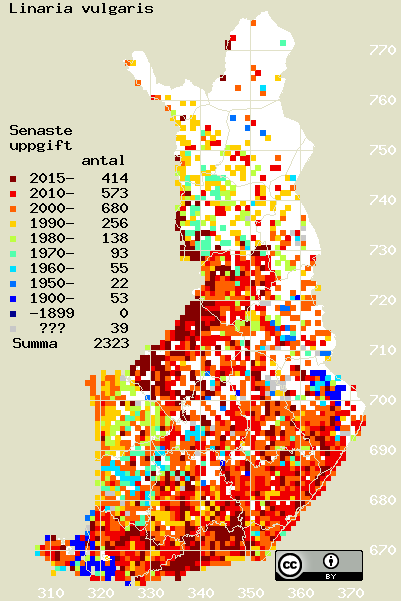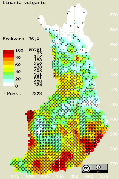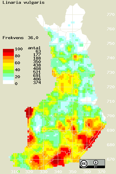 Detta är årets 2017 kartsida över taxonet Linaria vulgaris. Över taxonet kan finnas kartor även från andra år: 2018 / 2017 / 2016 / 2015 / 2014 / 2013 / 2012 / 2011 / 2010 / 2009 / 2008 / 2007 / 2006.